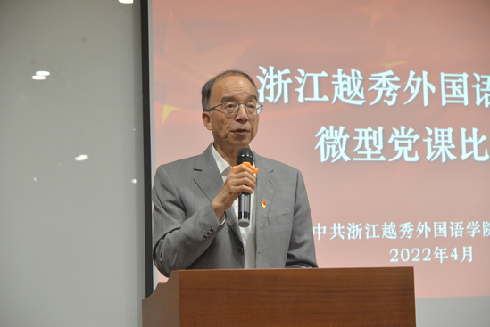 费君清就下一步做好微党课教育提出四点要求,一是要突出政治站位。微党课必须讲政治、讲党性,围绕“党”字立意,突出对党的基本理论、基本路线、基本方略的宣传教育。二是能解决思想认识问题。党课具有鲜明的政治性,思想性,战斗性和指导性,我们要通过讲党课,教育和引导党员和大学生紧密团结在以习近平同志为核心的党中央周围,坚定对党的领导的信心,坚定走中国特色社会主义道路的决心。三是要小课堂大道理,要讲身边人身边事。要发挥微党课小切口、小主题、小平台、小故事特点,以新颖活泼形式讲明大道理,让受众耳目一新。四是要生动活泼、喜闻乐见,善于运用现代化科学技术和艺术手段。微党课深入浅出,改变一人唱“独角戏”单向灌输的方式,台上台下互动,使大众喜爱听、容易记、明道理、强信心。微党课可以用视频、漫画、图片等形式在新媒体平台推出,通过手机端就能随时收看、收听,接受教育。最后费君清强调,今年下半年,中国共产党将召开第二十次全国代表大会。为了喜迎二十大,全校各基层党组织要把学党课、听党课、议党课融入日常党建工作,通过上党课进一步推进党建工作,并取得更好的成效。据悉,本次微型党课比赛是在《浙江省教育厅关于举办第八届全省高校微型党课大赛的通知》和《绍兴市教育局关于举办2022年绍兴市直教育系统微型党课大赛的通知》等文件精神指导下开展的,分教师组和学生组两组进行,共有12位教师党员和11位学生党员参与本次微型党课比赛宣讲。