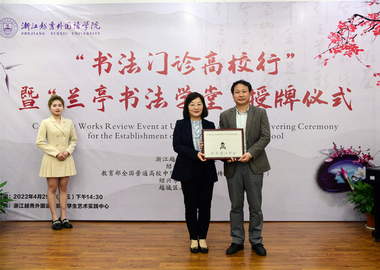 4月29日下午,“书法门诊高校行”暨“兰亭书法学堂” 授牌仪式在我校稽山校区大学生艺术实践中心举办。