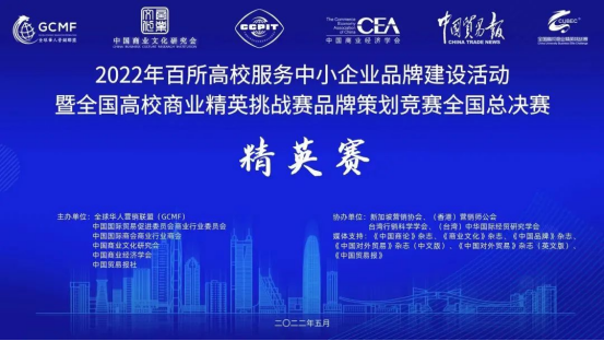 2022年5月29日,由全球华人营销联盟(GCMF)、中国国际贸易促进委员会商业行业委员会、中国国际商会商业行业商会、中国商业文化研究会、中国商业经济学会和中国贸易报社共同主办,中国国际贸易促进委员会商业行业委员会承办的2022年全国高校商业精英挑战赛品牌策划竞赛全国总决赛暨(新加坡)全球品牌策划大赛中国地区选拔赛(国A)在线上成功举办。