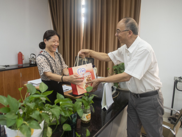7月26日上午,学校费君清教授、党委副书记高琴波冒着酷暑分组赴两校区走访并慰问暑期仍奋战在招生录取、基础建设、后勤服务、疫情防控的干部职工,送去清凉和关怀。工会、校长办公室等部门负责同志陪同走访和慰问。