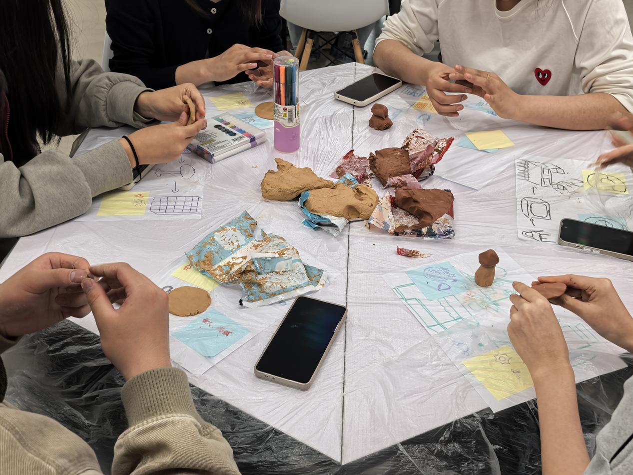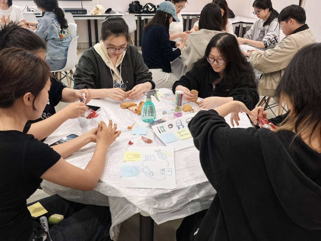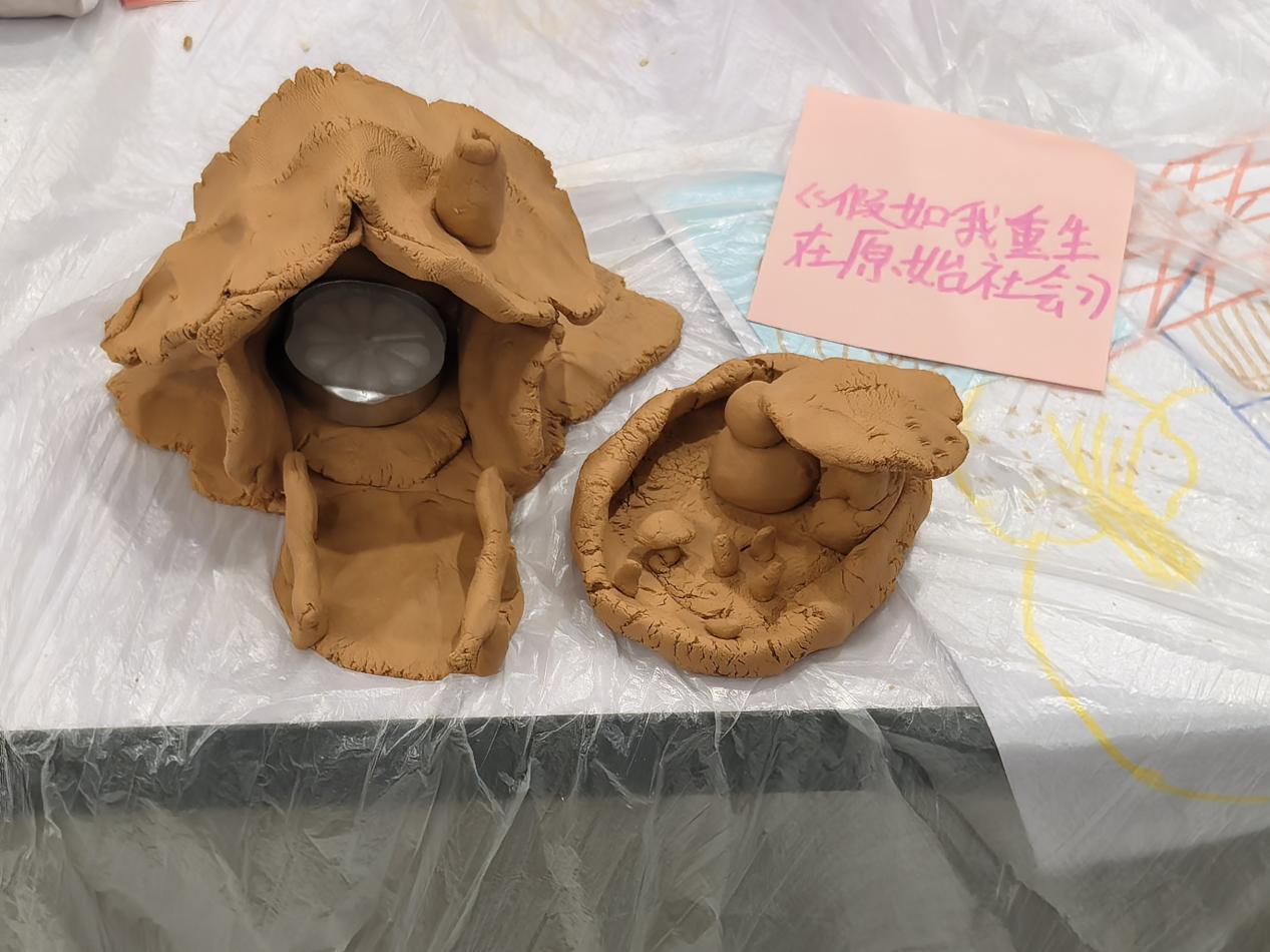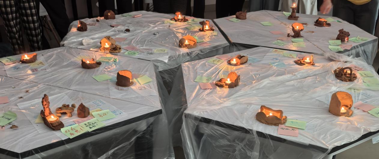 随后,同学们用黏土亲手搭建属于自己的“生命小屋”——将记忆中的阳台、灯光、安心角落揉进作品,在指尖创作中完成与自我的温柔对话。全场最动人的时刻是点亮小屋烛光:灯光渐暗,微光汇聚,照亮彼此脸庞。大家参观小屋、互留温暖留言,并在分享环节中敞开心扉。