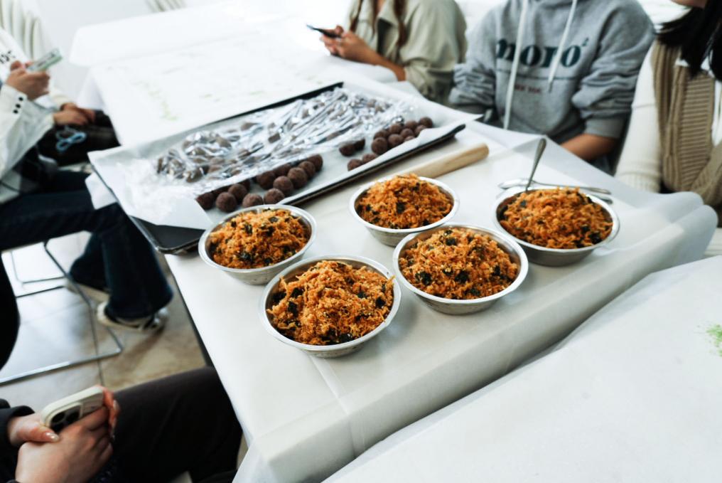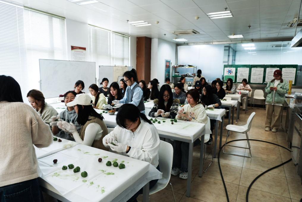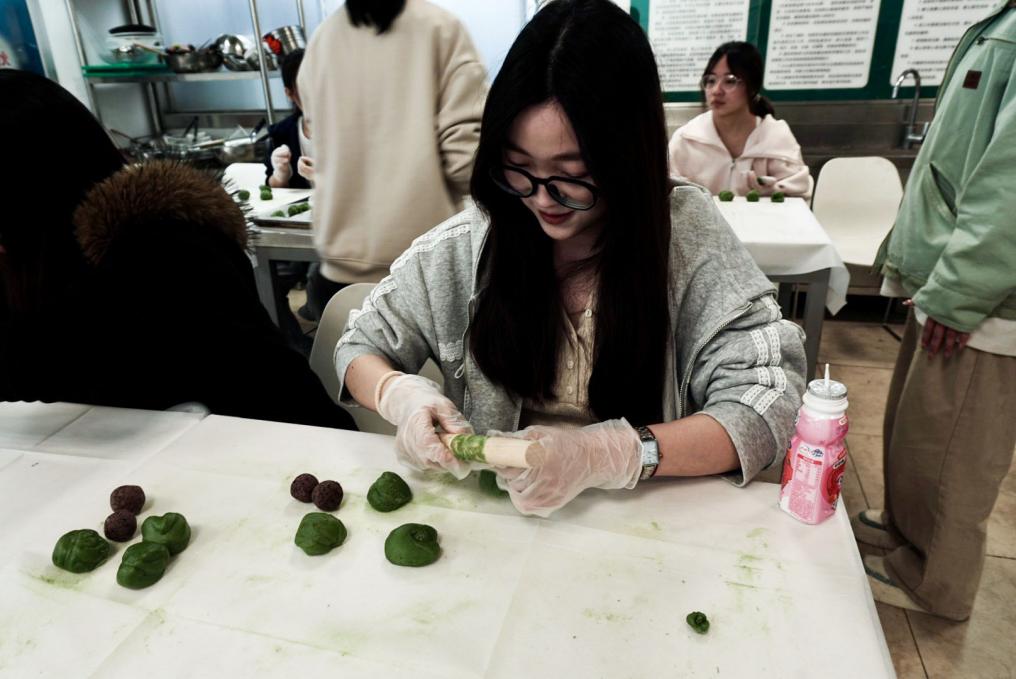 “你看我这个怎么裂开了?”“你的手法太温柔了,要用力压实!”现场欢声笑语不断,大家互相交流心得,互相“抢救”失败的作品。不少同学表示,这是人生第一次亲手做青团,虽然成品“颜值”参差不齐,但过程充满成就感。